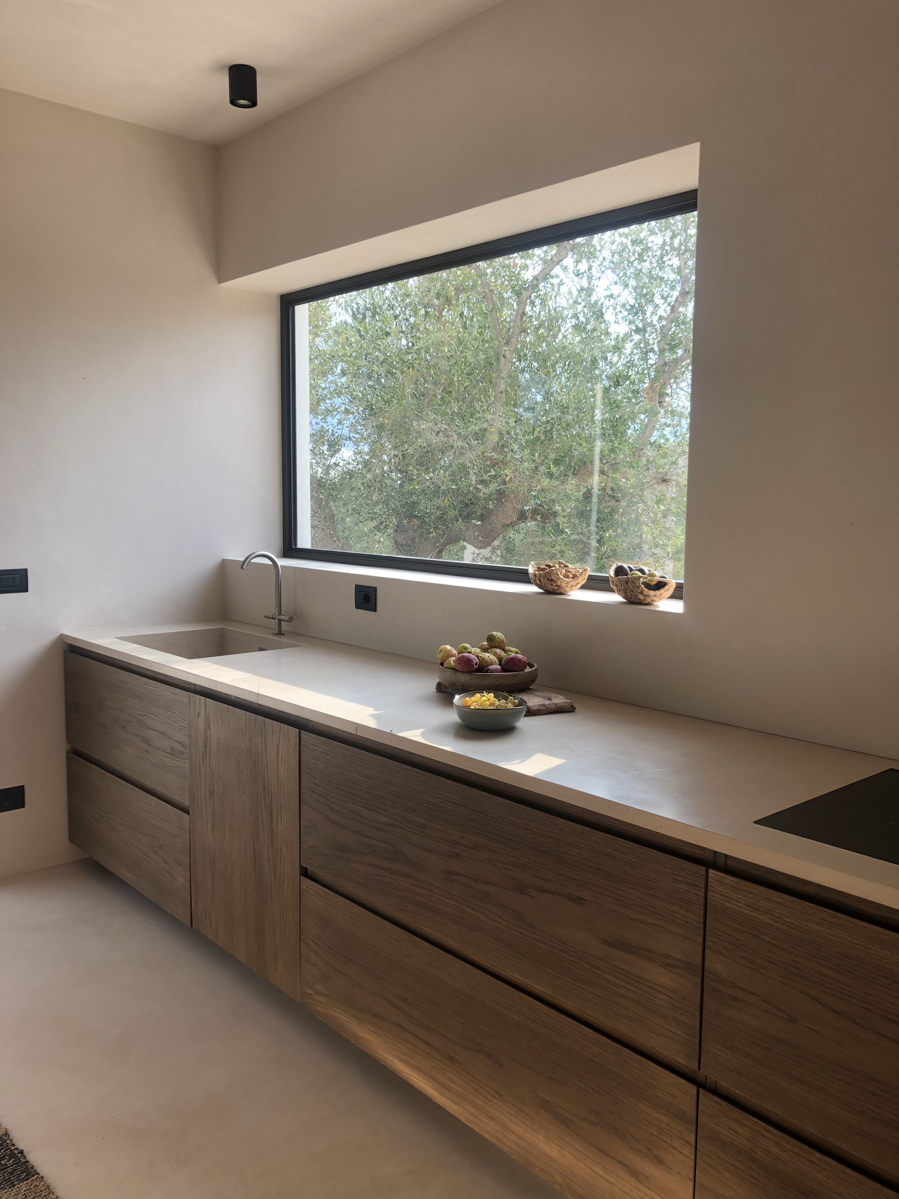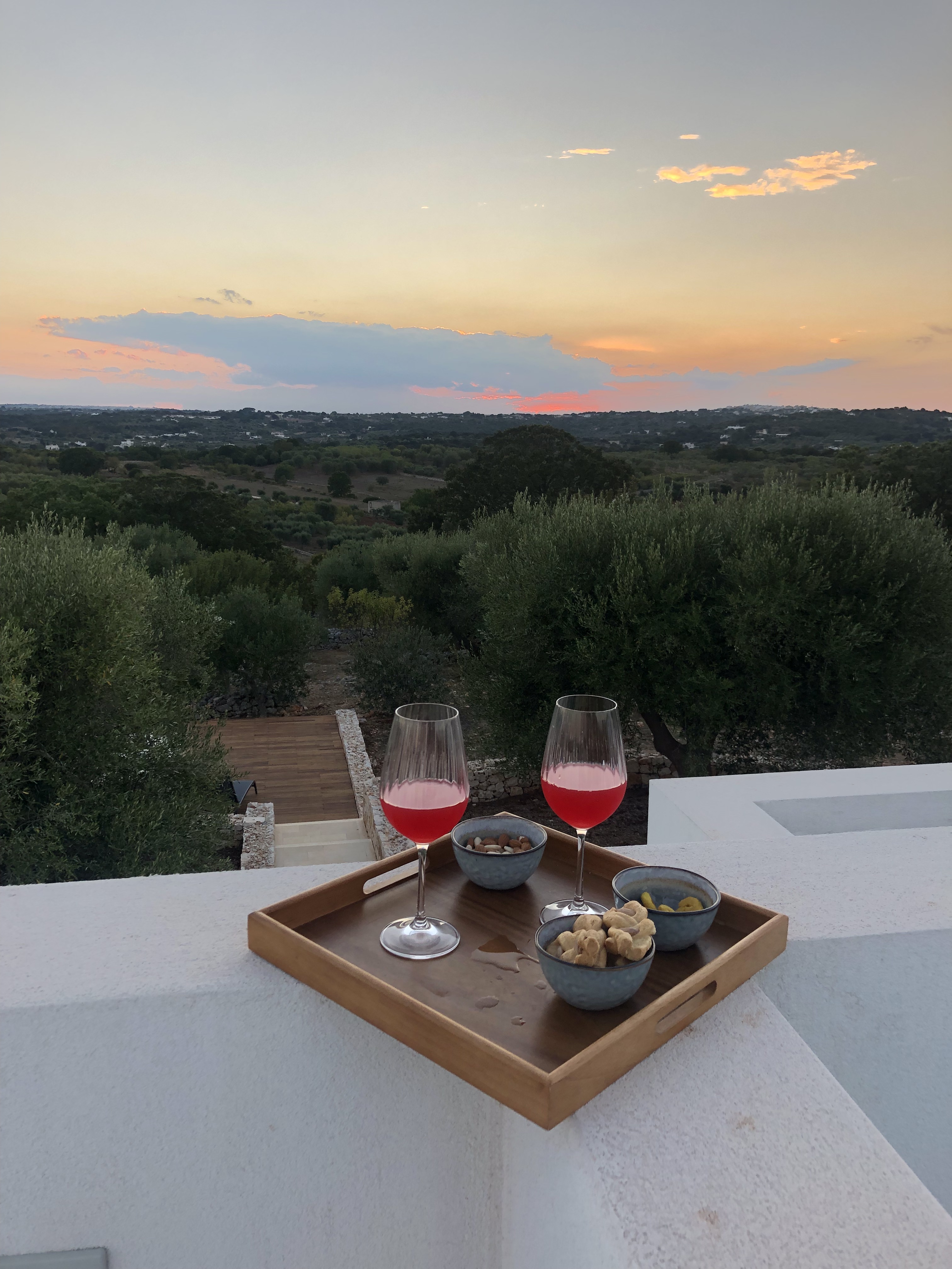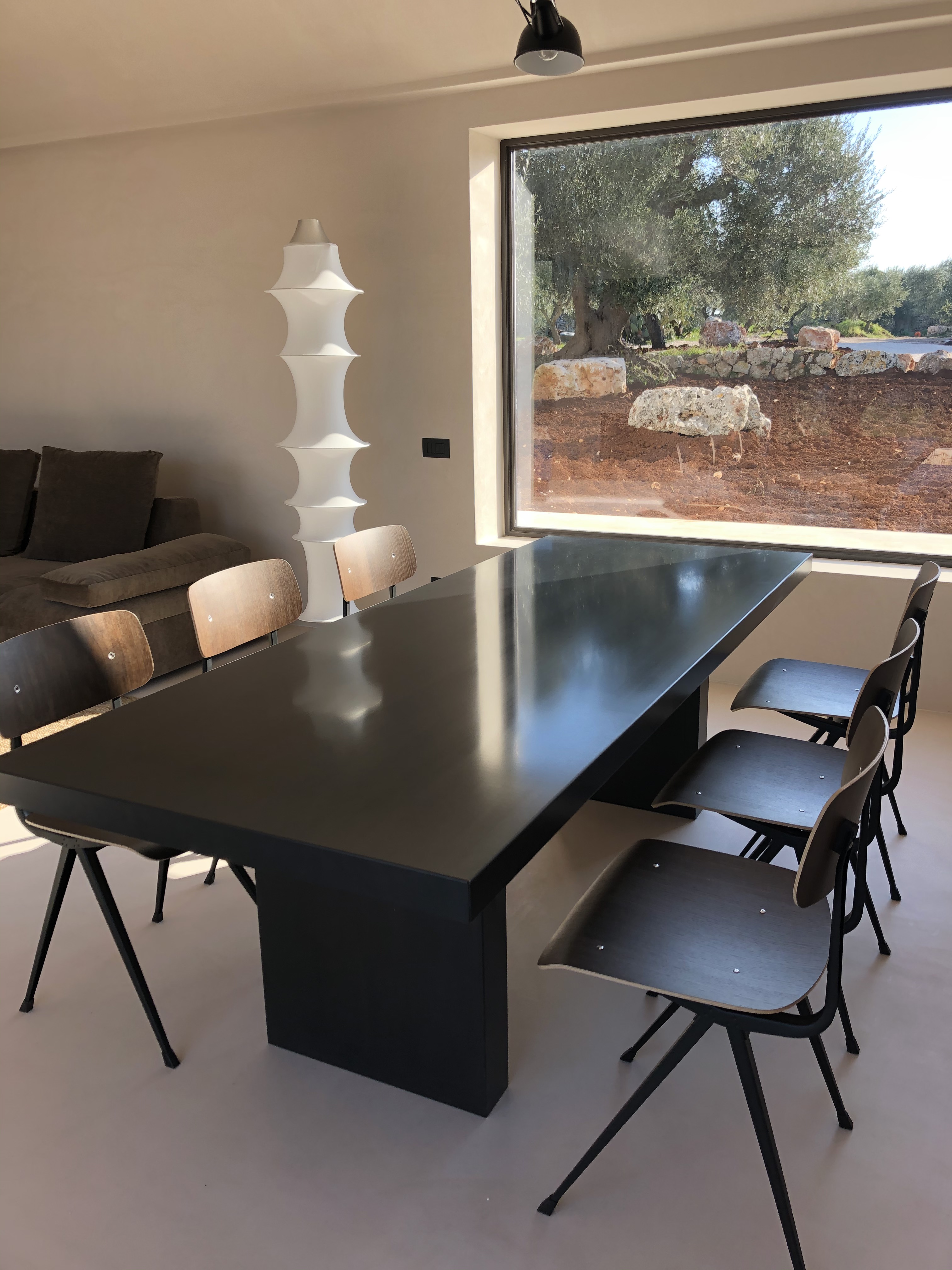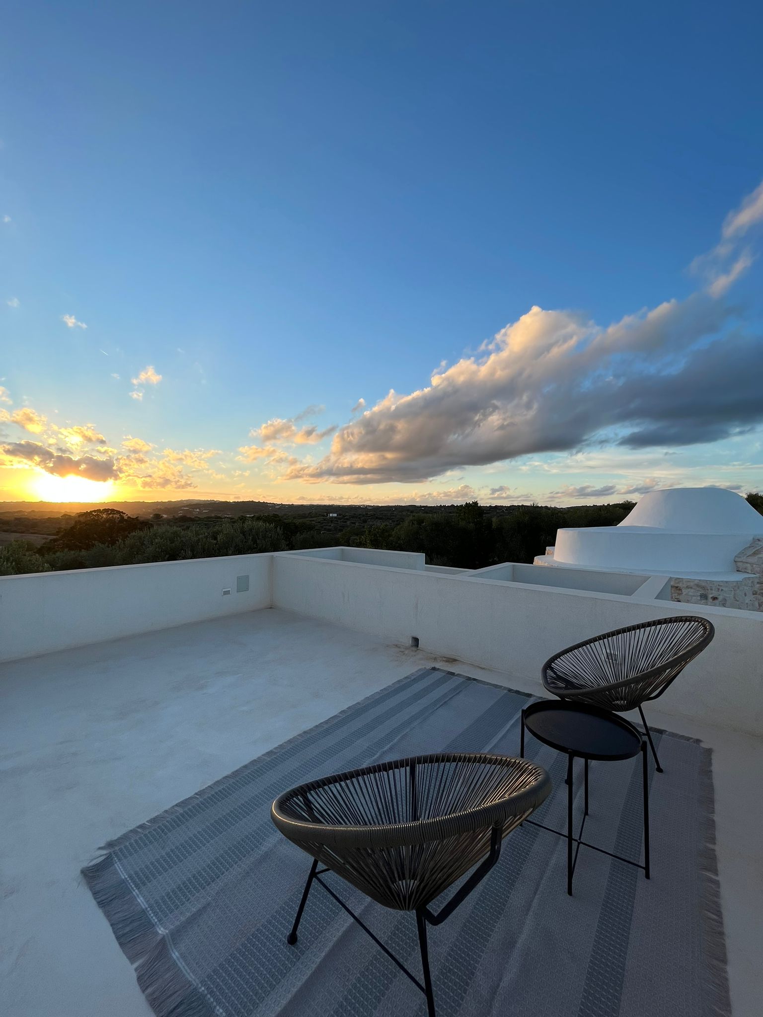 La proprietà comprende una casa di nuova costruzione, un trullo adiacente e altri due trulli situati poco più distanti. La nuova abitazione si affianca armoniosamente al trullo esistente, senza sovrastarlo: un equilibrio rispettoso, dove l’architettura contemporanea dialoga con la tradizione. Gli elementi architettonici, i materiali scelti e la palette cromatica creano continuità tra interno ed esterno, rendendo naturale e delicato il passaggio tra antico e moderno. Le ampie vetrate incorniciano il paesaggio come quadri viventi, aprendo la casa alla luce e alla bellezza della Valle. Materiali come la pietra, il ferro e il legno reinterpretano in chiave contemporanea gli elementi tipici della tradizione locale, mentre i colori li amalgamano e li armonizzano con eleganza.