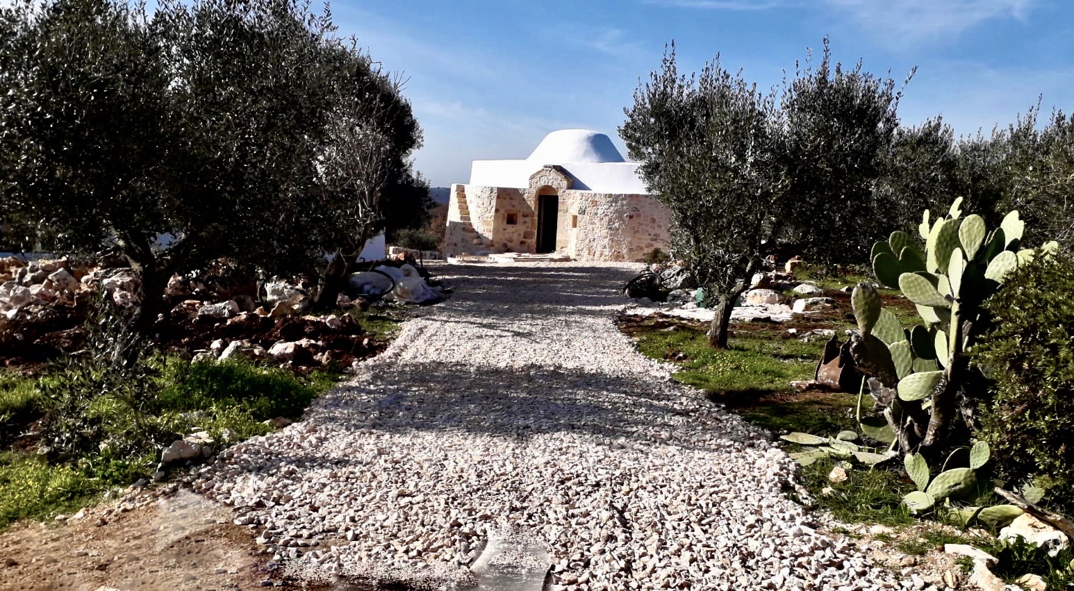 The property consists of a newly built house, an adjacent trullo, and two additional trulli located a short distance away.