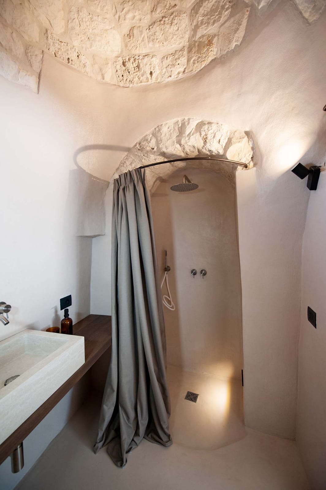 By design, refrigerators and televisions are not included in the trulli, but are available in the shared areas — a conscious choice to encourage relaxation and disconnection.